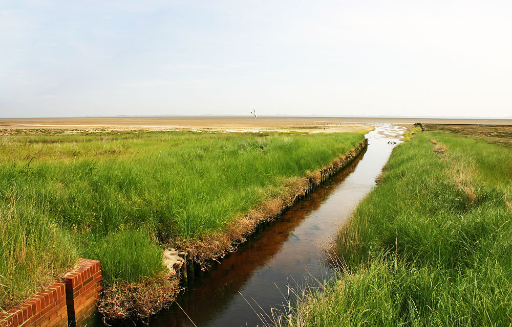Vom Klärwerk wird das gereinigte Abwasser zum Pumpenhäuschen am Ostgrodendeich gepumpt und von dort aus gelangt es an dieser Stelle ins Wattenmeer. Im Gegensatz zu früher belastet es das Wattenmeer nicht mehr, seit den 1970er Jahren besteht die Kläranlage nun bereits.
