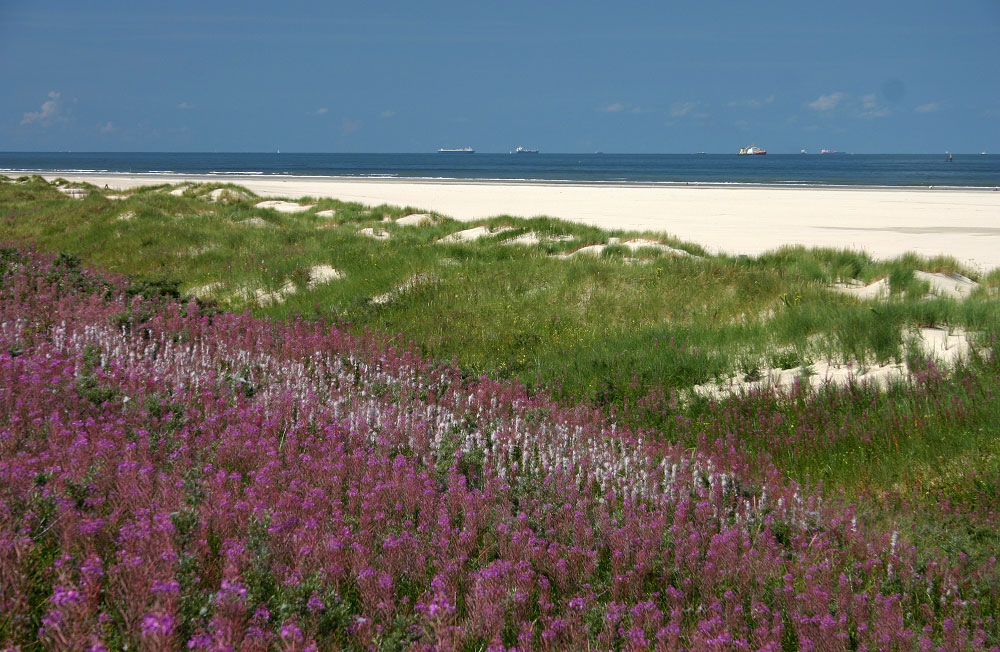 An dieser Stelle – wir befinden uns an der östlichsten Dünenüberwegung der Insel – sind die Dünen noch in Ordnung: Es gibt keine Abbruchkante und die Dünen befinden sich sogar im Wachstum. Grund ist ein sehr breiter Strand, der die Küstendünen bei Sturmfluten schützt.