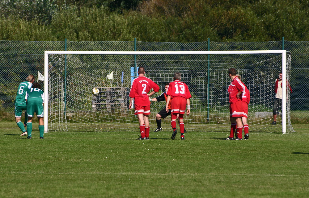 Hier erhält der TuS Wangerooge, nur wenige Minuten vor Ende der Spielzeit, beim Stand von 3:5 einen Elfmeter zugesprochen. Glücklicherweise wird dieser von Sören Viehmeister sicher verwandelt und es steht nur noch 4:5. Am Ende werden sich der TuS und RW Tettens II gar noch die Punkte teilen.