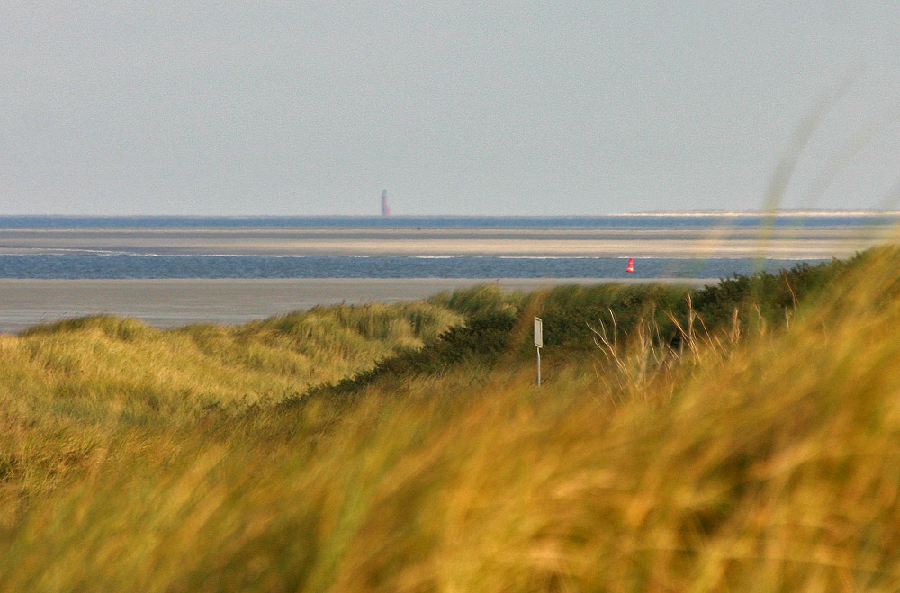 Der letzte Leuchtturm dieser Reihe ist zugleich der am weitesten entfernte und älteste Turm: Das Leuchtfeuer »Hohe Weg« in der Außenweser. Erbaut wurde der Turm von 1854 bis 1856 nahe der Insel Mellum, die im rechten Bilddrittel am Horizont auszumachen ist. Seit 1856 ist der Turm nunmehr in Betrieb.