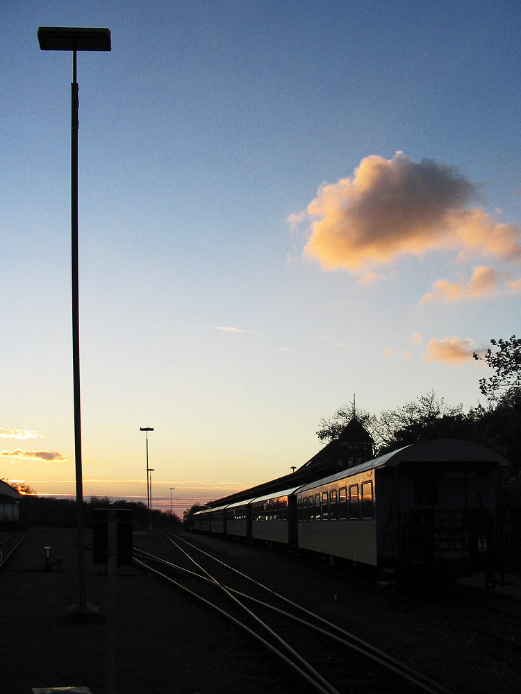 ‹ An Gleis 2 (ja, das »erste« Gleis hat wirklich die Nr. 2, sie ist aber nirgendwo angeschlagen) wartet die Inselbahn, die heute noch einmal zum Westanleger fahren wird.