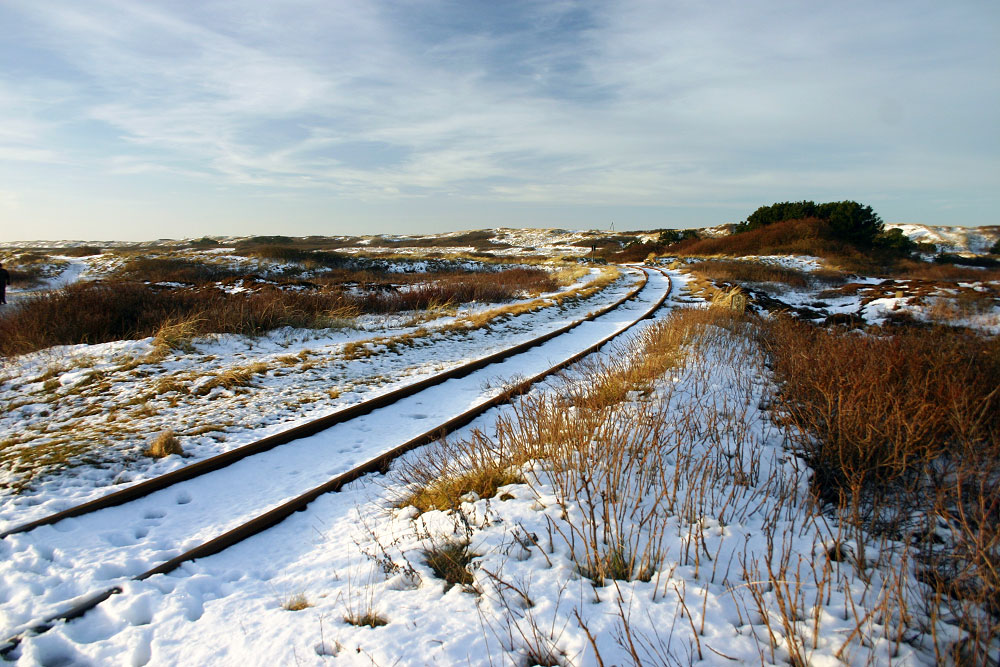 Auf der Inselbahn-Nebenstrecke zum Westdorf ist momentan Betriebspause. Erst wenn in den Kinder- und Jugendheimen im Westen wieder Betrieb herrscht, wird das Deichschart (nicht im Bild) geöffnet und die Züge rollen wieder.