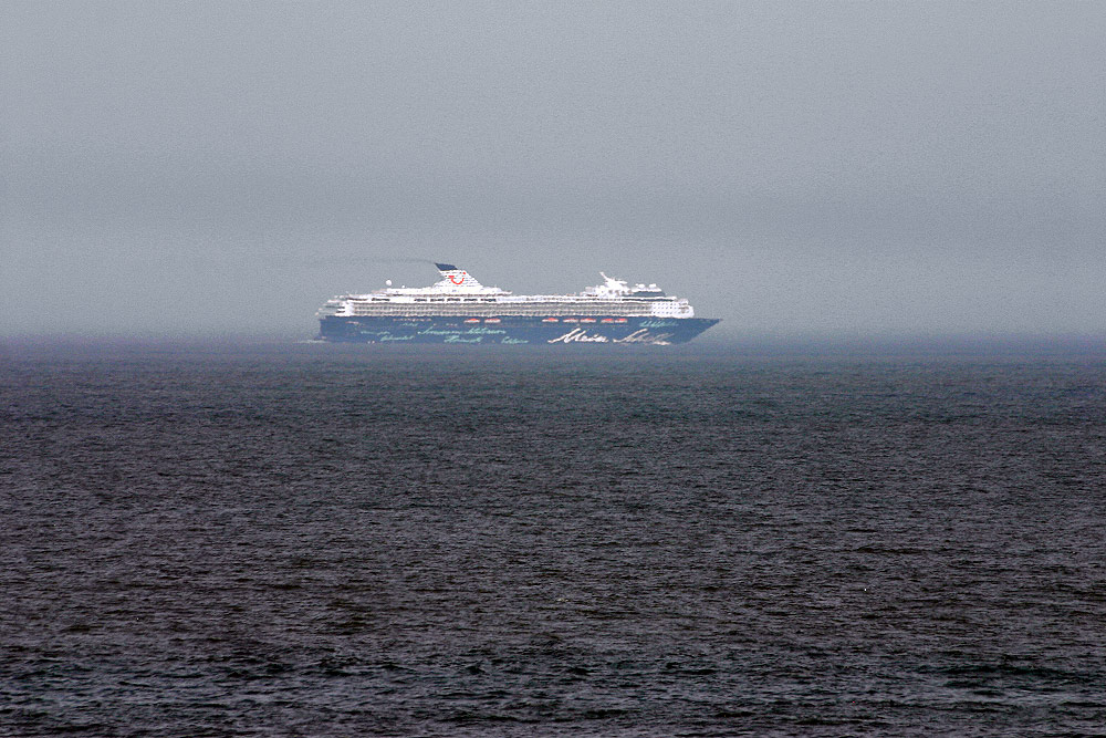 Häufiger kommt es vor, daß auch große Kreuzfahrtschiffe Wangerooge passieren, in diesem Fall ist es die »Mein Schiff 2« der Reederei »TUI Cruises« im Weserfahrwasser. Im November 1997 von der Meyer Werft in Papenburg erbaut, war es zunächst als »Mercury« und »Celebrity Mercury« auf den Weltmeeren unterwegs, bis es am 14. Mai 2011 in »Mein Schiff 2« umgetauft wurde (das Foto entstand also vor der offiziellen Schiffstaufe).