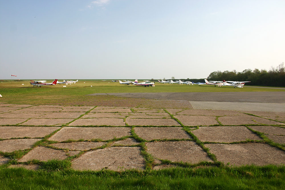 Diesen Blick aufs Flugfeld hat man, wenn man auf der Terrasse des »Tower Stübchens« sitzt.