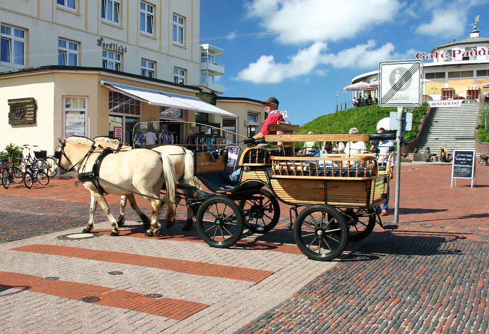 Auf Wangerooge kann man auch Kutschfahrten unternehmen, in diesem Fall handelt es sich allerdings um eine »Leerfahrt« durch die »Peterstraße«.