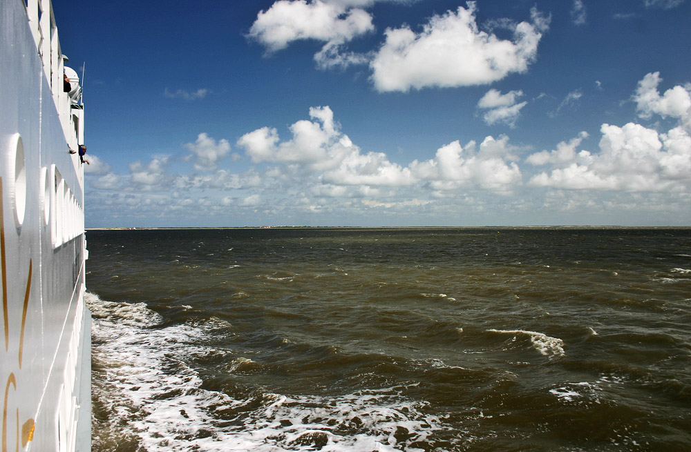 Kurs Wangerooge: Die Insel ist dort hinten bereits auszumachen, jetzt ist es nicht mehr weit bis zum Westanleger.