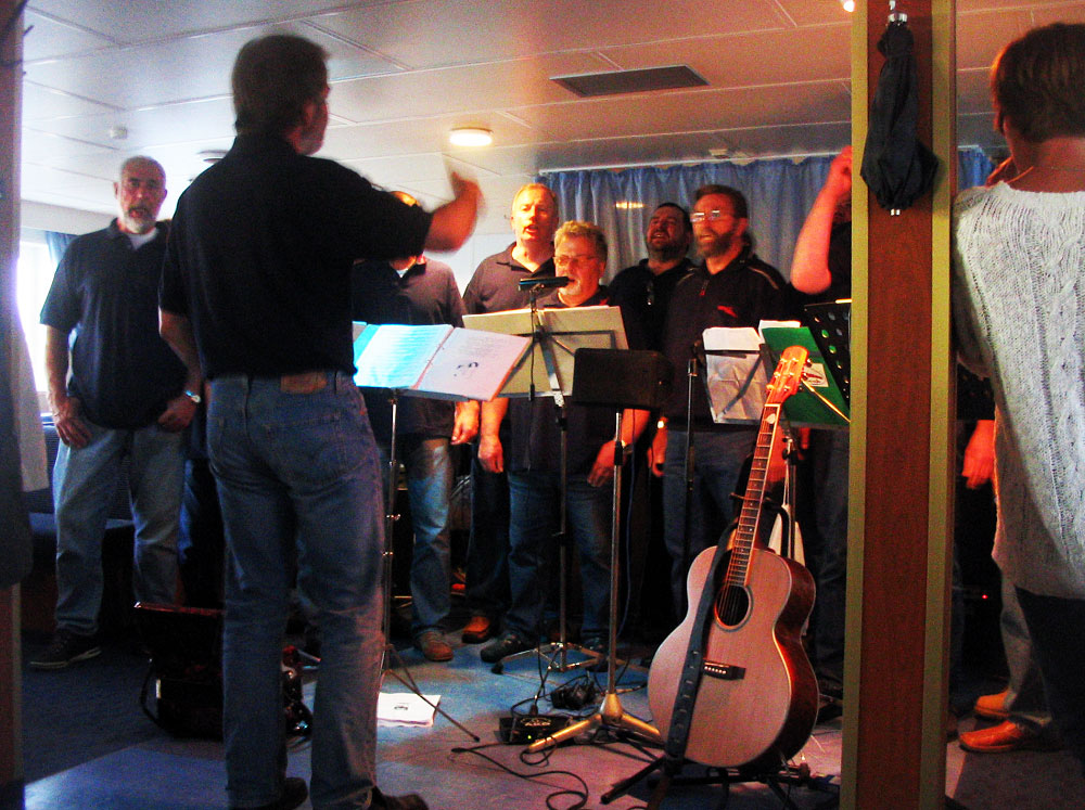 Der Shantychor »De Wanngeroogers« begleitet unsere Fahrt zum Leuchtturm »Roter Sand« mit einem bunten Musikprogramm.