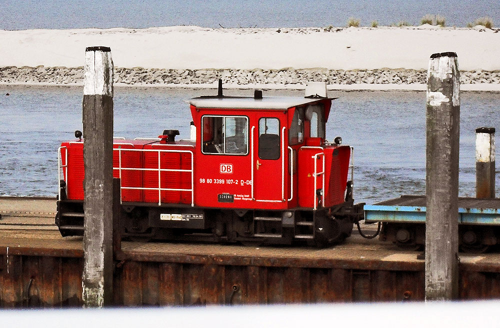 Die Schöma-Lok mit der Nummer »399 107-2« wartet bereits am Westanleger auf Arbeit.