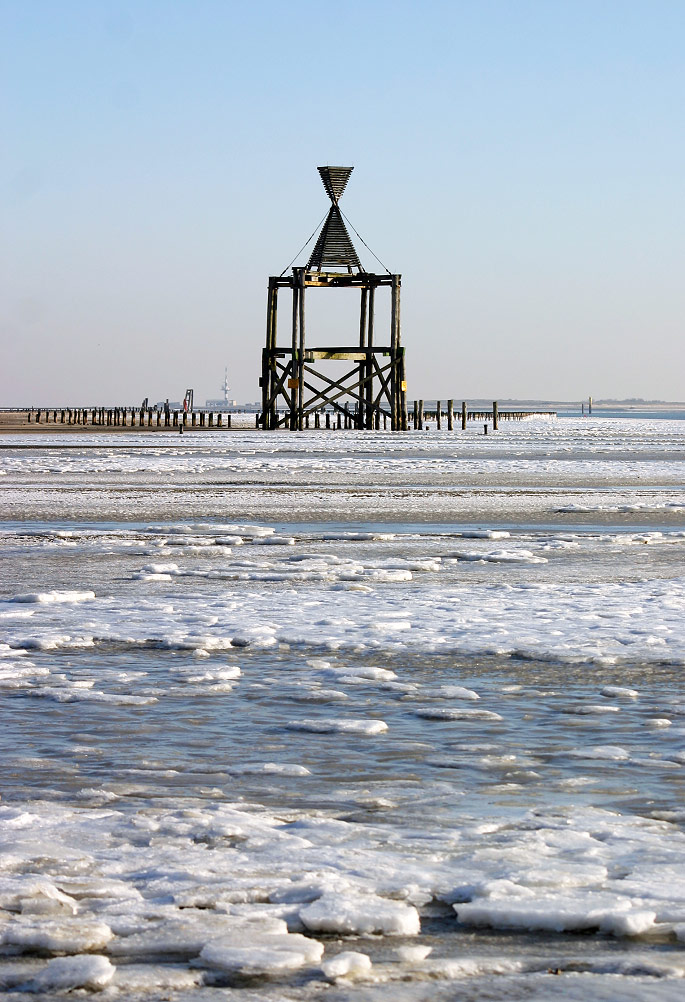 ‹ Das mit Abstand markanteste Bauwerk im Osten der Insel ist die »Ostbake« – eine Stundenglasbake, die es in abgespeckter Form bereits zur Jahrhunderwende gab.