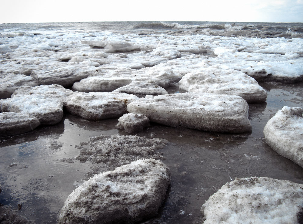 Ein weiteres Foto vom Packeis, das sich bei Dauerfrost am Spülsaum des Weststrandes angesammelt hat.