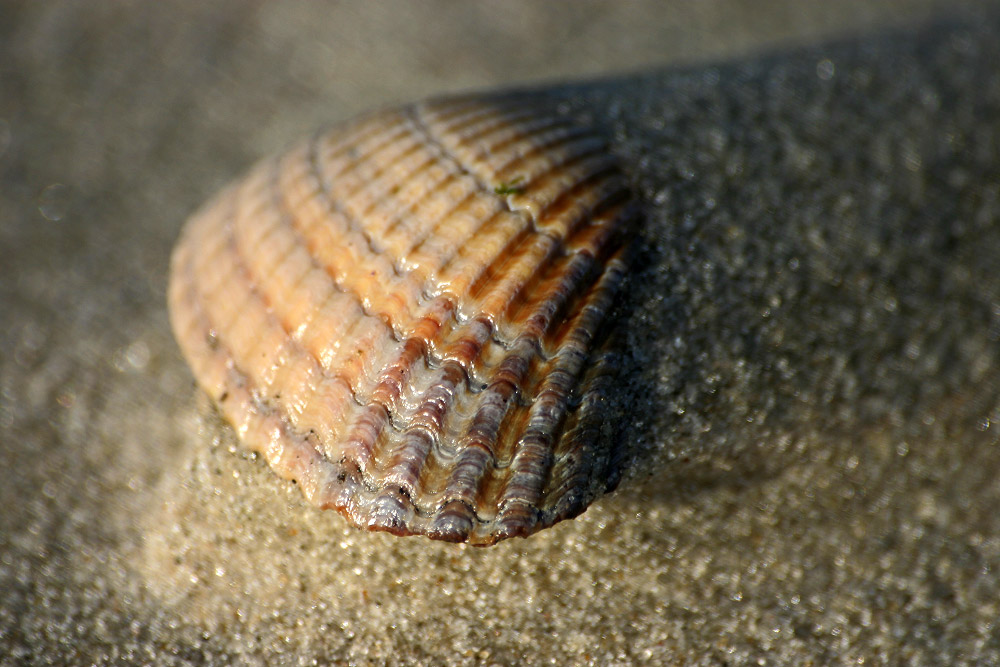 Die »Gemeine Herzmuschel« ist die Muschel, deren Schale man auf Wangerooge mit Abstand am häufigsten finden kann. Ein anderer Name für diese Muschelart ist »Eßbare Herzmuschel«, sie kann, wie der Name bereits erahnen läßt, verzehrt werden.