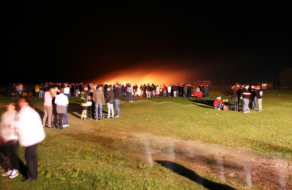 Vom Rand der im Ostgroden gelegenen Weide aus blicken wir hier zum Osterfeuer.