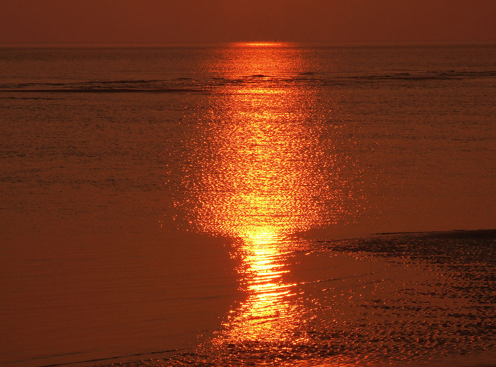Die aufgehende Sonne spiegelt sich im Meer. Eine ruhige, ganz spezielle Stimmung, die man nur zu dieser unchristlichen Zeit erleben kann.