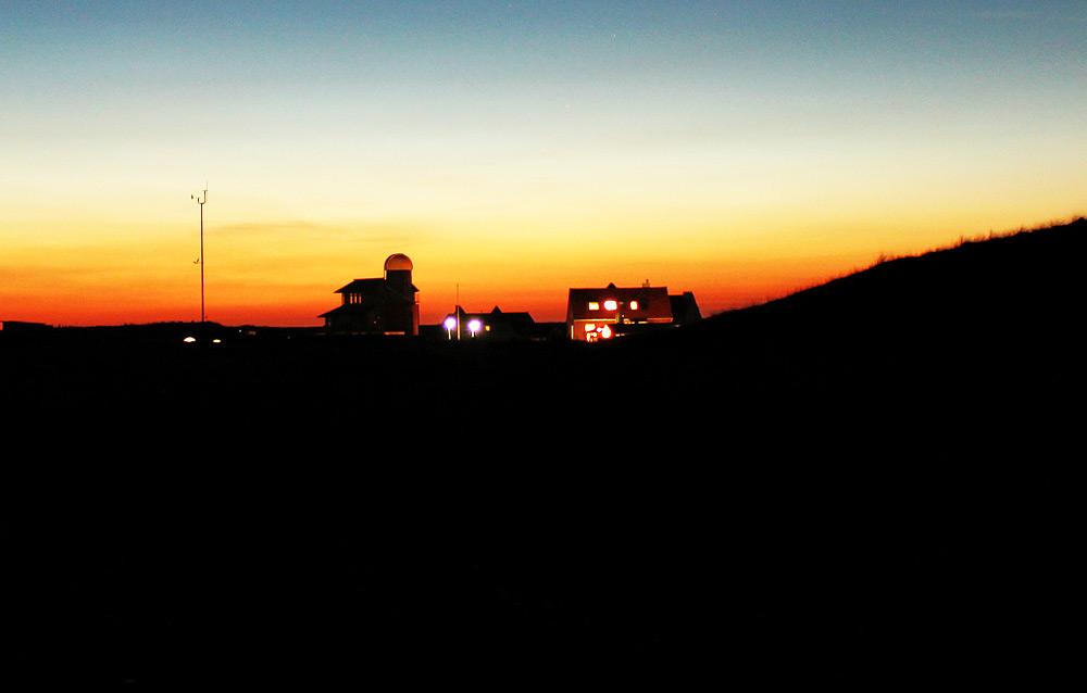 Mittlerweile ist es fast halb elf, doch der Horizont ist noch immer ein wenig erhellt (die Langzeitbelichtung verfälscht das Ganze ein wenig, in Wirklichkeit war es dunkler). Der Mast links im Bild gehört übrigens zur Meteomedia-Wetterstation, hier wird unter anderem der 10-Meter-Wind gemessen.