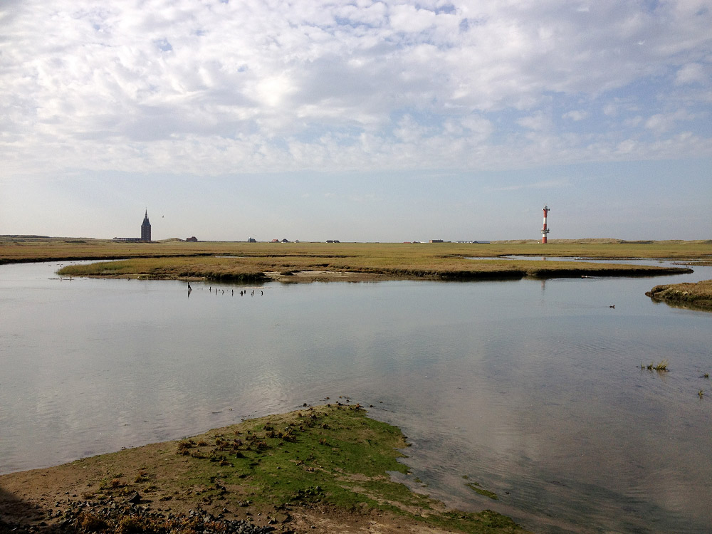 Während die Inselbahn durch den Nationalpark fährt, hat man einen guten Blick auf die Priele der Lagune und die beiden Türme im Westen.