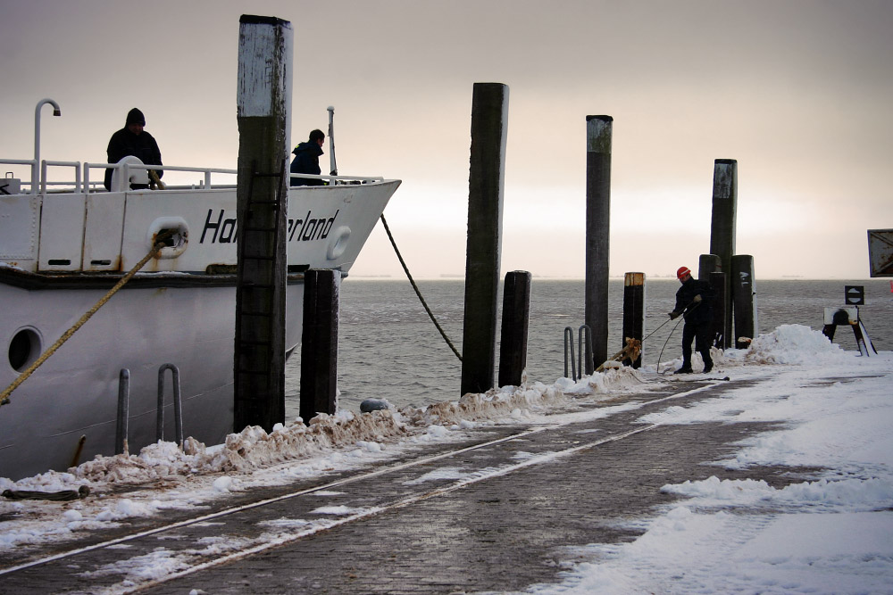 Die MS »Harlingerland« legt hier gerade am Westanleger an, gleich werden wir aufs Schiff umsteigen können.