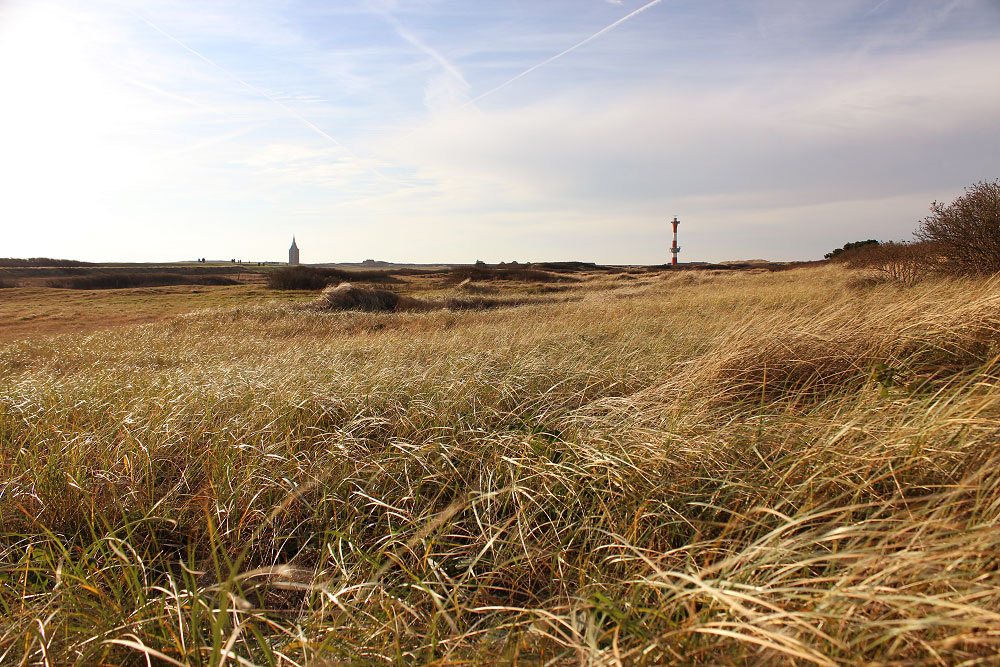 Westturm und Neuer Leuchtturm und davor der Westinnengroden, der vom Westgrodendeich (links) und dem ehemaligen Reichsdeich (rechts) begrenzt wird.