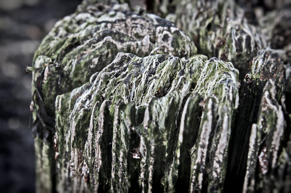 Dieser mit Seetang bewachsene Pfahl auf Buhne »E« hat schon einiges mitgemacht, wie man deutlich erkennen kann.