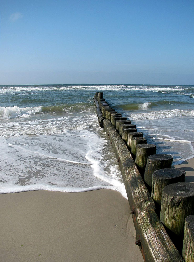 ‹ Diese Pfahlbuhne befindet sich am Surfstrand, in direkter Nachbarschaft zu ihrer steinernen Kollegin mit der Bezeichnung »L«.