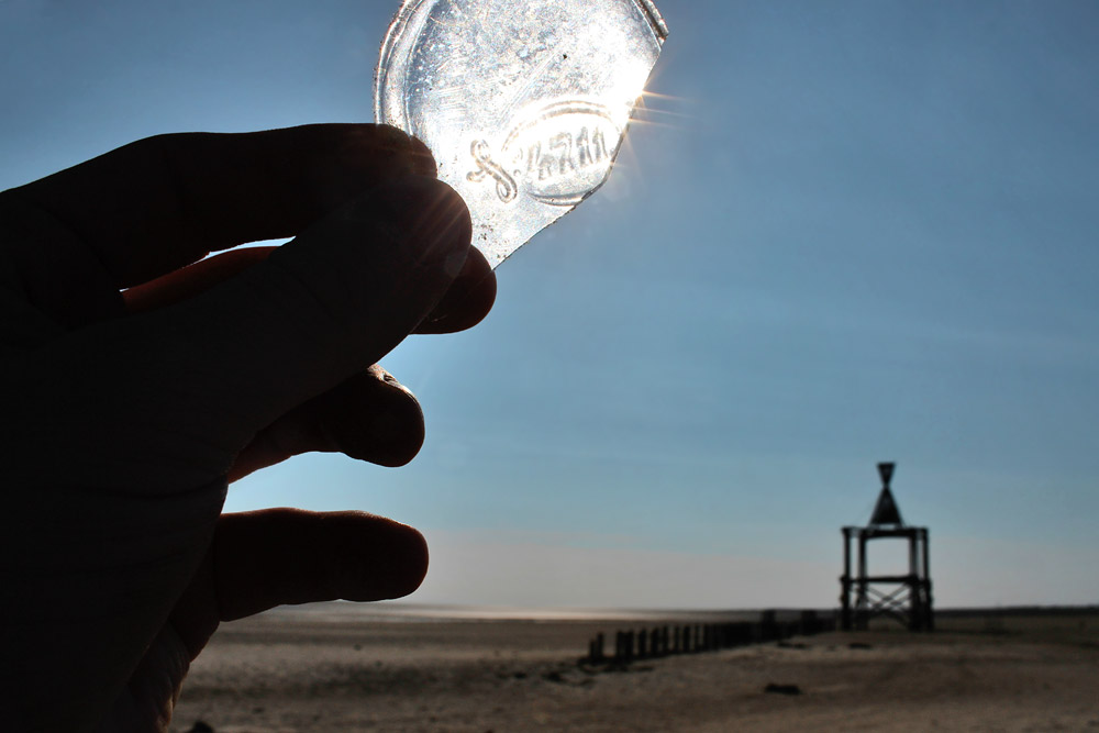 Am Ostende lassen sich zwischen den zahlreichen Steintrümmern auch immer wieder Scherben und Reste alter Gebrauchsgegenstände finden. Hier der Boden eines »4711«-Flakons, höchstwahrscheinlich aus dem letzten Jahrhundert.