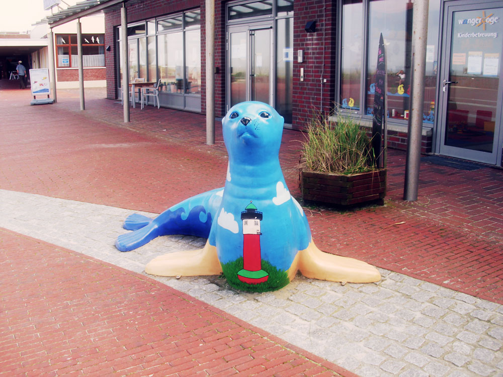 Auf dem »Platz am Meer«, direkt vor dem Servicegebäude der Kurverwaltung, ist ein inseltypisch gestalteter Seehund zu finden.