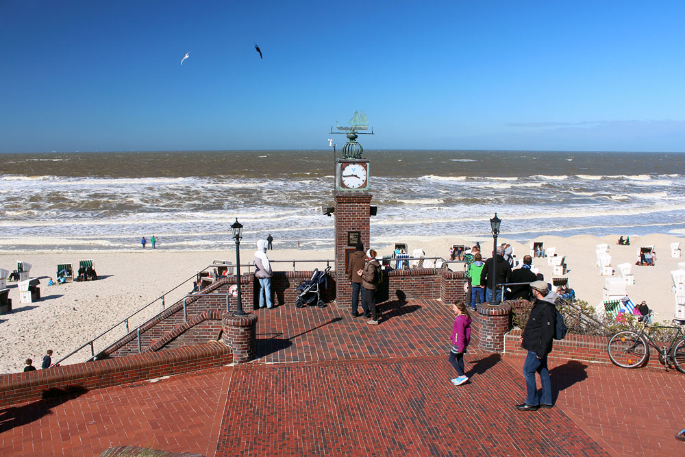 Ein steifer Nordwind fegt über die Insel und läßt eine ganz ordentliche Brandung entstehen. Der Hauptstrand wurde wieder aufgefahren, es befinden sich bereits wieder zahlreiche Strandkörbe im West- und im Mittelfeld.