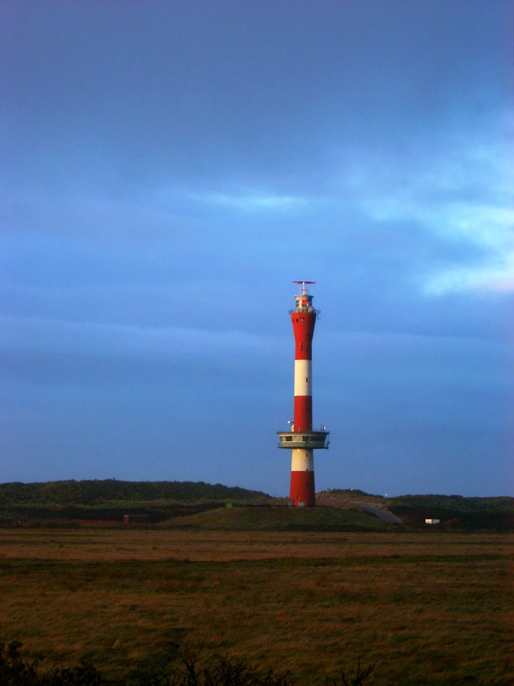 ‹ Allmählich beginnt die Nacht, also fängt auch der Neue Leuchtturm an, sein rotes Licht über Insel und Meer auszusenden.