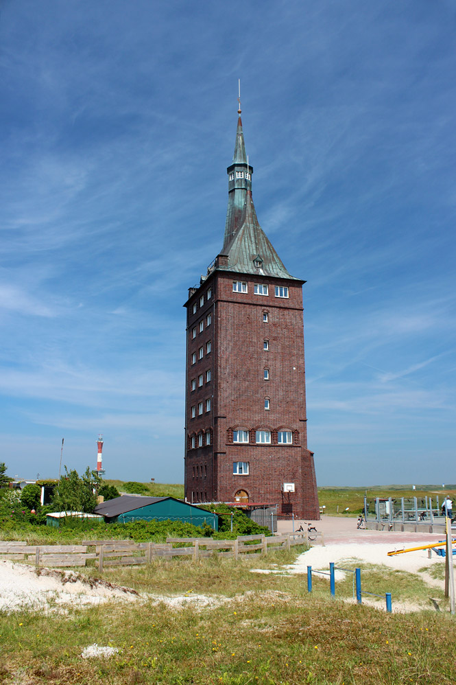 ‹ Beim »Westturm« handelt es sich um den Nachbau eines Turms, der ab 1597 auf Wangerooge erbaut wurde und bis 1914 Wahrzeichen und wichtige Landmarke war. Von Beginn an war der Nachbau als Jugendherberge geplant, auch heute gehört er noch zum »Deutschen Jugendherbergswerk«.