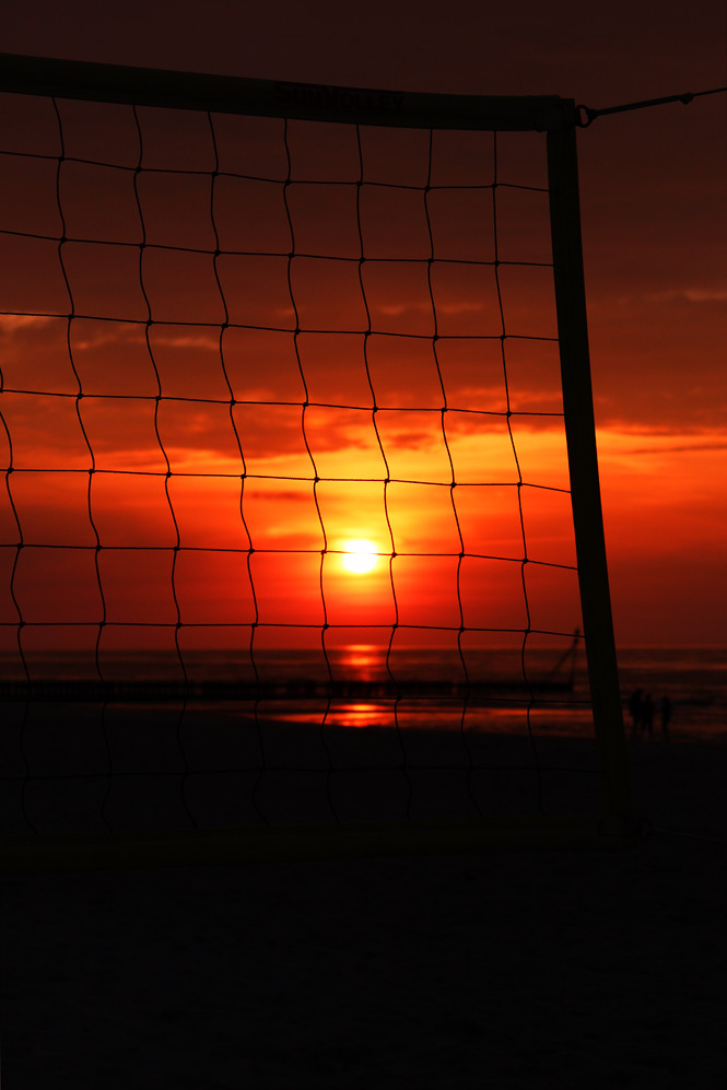 ‹ Tagsüber ist an den Beachvolleyball-Netzen jede Menge los, abends hingegen können wir den Sonnenuntergang hier ganz in Ruhe genießen.