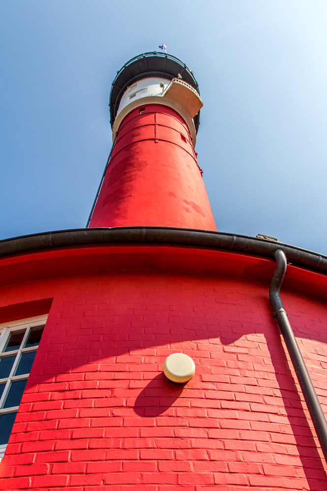 ‹ Auch wenn der Alte Leuchtturm in der Höhe nicht einmal 40 Meter mißt, ist er schon eine imposante Erscheinung – vor allem, wenn man unmittelbar am Fuße des Turms steht.