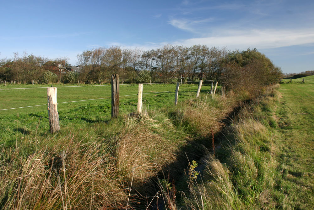 In langen Gräben, die fast immer parallel zu den Inseldeichen verlaufen, sammelt sich das Grund- und Regenwasser der Innengröden. Das Wasser wird anschließend von den Pumpen in den Pumpenhäuschen ins Wattenmeer transportiert, damit der Grundwasserspiegel nicht immer weiter ansteigt.