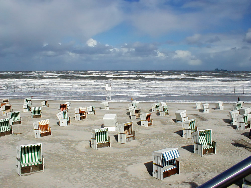Auf Wangerooge zieht ein Sturm auf, der Wind nimmt über den Tag verteilt immer weiter an Stärke zu und die Mitarbeiter der Gemeinde bzw. der Kurverwaltung bereiten sich auf die Bergung der am Wasser stehenden Strandkörbe vor.