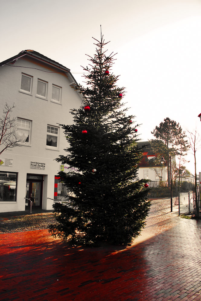 ‹ Auf dem »Appellplatz« an der Kreuzung von »Zedeliusstraße« und »Friedrich-August-Straße« wird nicht nur der Maibaum aufgestellt, es steht dort in der Adventszeit auch der größte Weihnachtsbaum der Insel – und nachts sogar mit Beleuchtung.