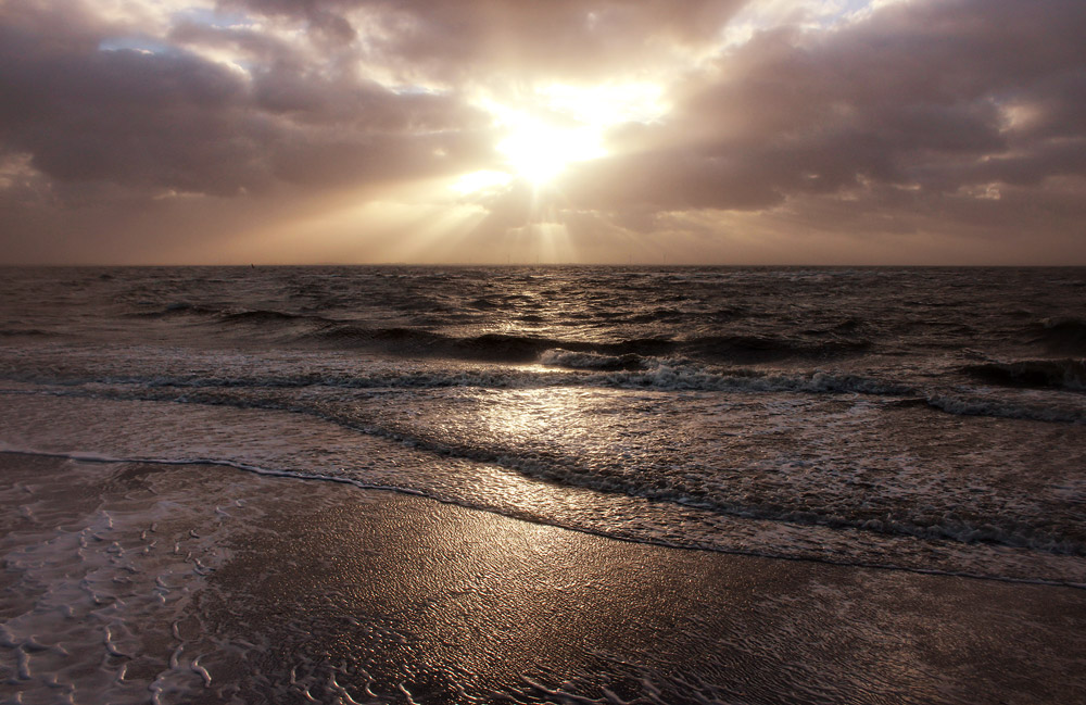 Wir blicken auf die »Harle«, das Seegatt zwischen Wangerooge und Spiekeroog. Bald wird die Sonne untergehen, doch noch ist ein wenig Zeit…