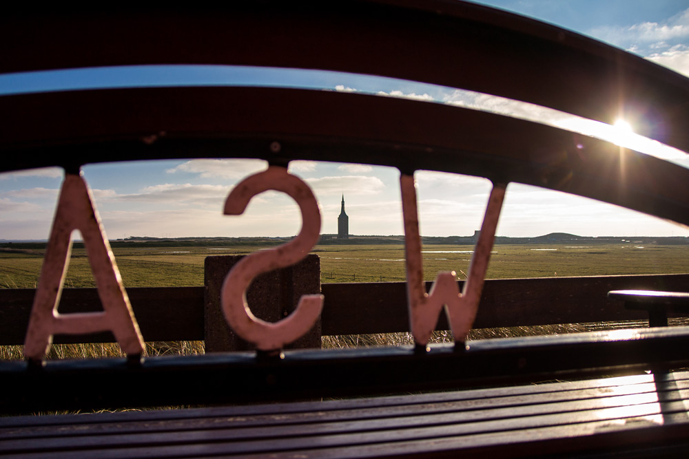 Bei der »WSA-Bank« aus der Überschrift handelt es sich selbstverständlich nicht um ein Geldinstitut, sondern um eine Sitzbank mit »WSA«-Aufschrift, die nahe des Neuen Leuchtturms aufgestellt wurde. Im Hintergrund sehen Sie übrigens die Weiden des Westinnengrodens und den Westturm.