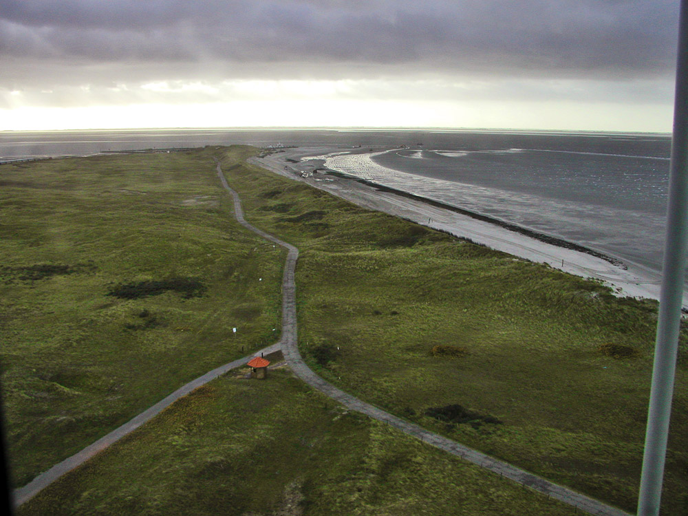Dieses Foto entstand aus der Spitze des Westturms. Wir sehen das »Harle Hörn« mit der Straße, die zum Westanleger führt, welcher im Hintergrund zu sehen ist.