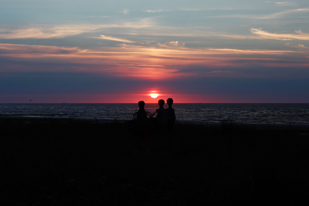 Die Sonne geht unter, betrachtet von der Strandpromenade.