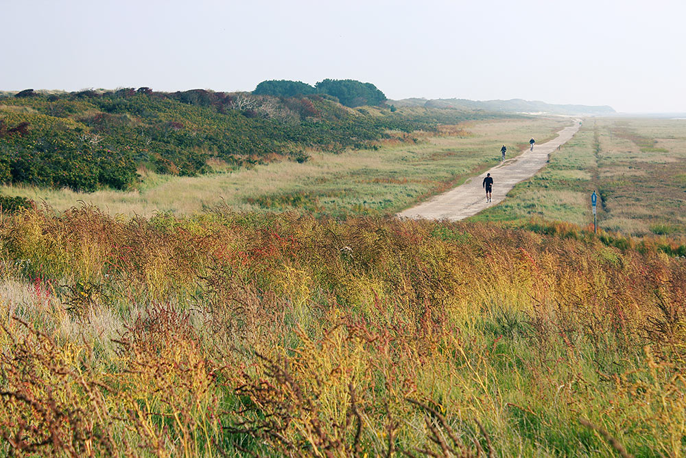 Auf dem erhöhten Ostgrodendeich sowie auf dem direkt angrenzenden Salzwiesenstreifen gedeihen Unmengen an Sauerampfer. An dieser Stelle wurde der Deich noch nicht gemäht, so daß man das Ausmaß des Bewuchses gut erkennen kann. Der »Wiesen-Sauerampfer« liebt nährstoffreiche und lehmige Böden wie die Kleischicht, die als Deckschicht auf den Deich aufgebracht wurde.
