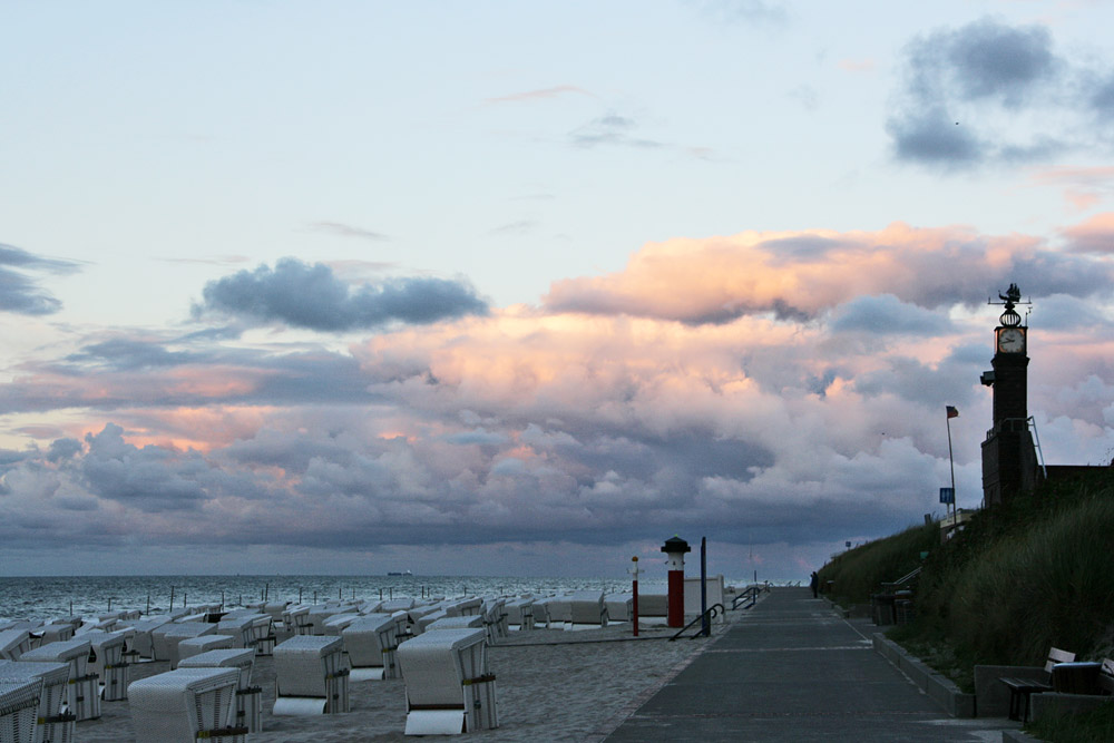 Abends ist auf der Strandmauer kaum noch etwas los, obwohl es am Strand in den Abendstunden besonders schön ist.