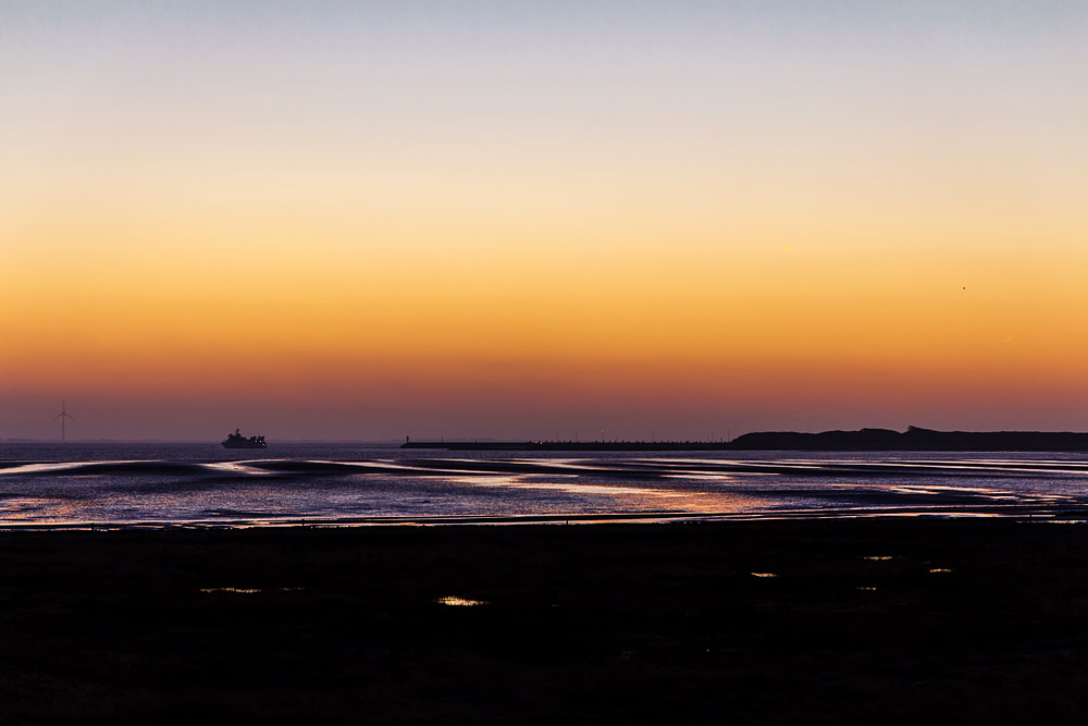 Hier die »Salinebucht« vom Deich aus gesehen. Im Hintergrund das Motorschiff »Wangerooge« und der Westanleger.
