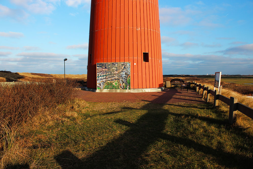 Wir sind einige Meter nach Westen gegangen, blicken hier auf den Turmfuß und das den Neuen Leuchtturm umgebende Grundstück, das sich oberhalb der Bunkeranlage befindet.