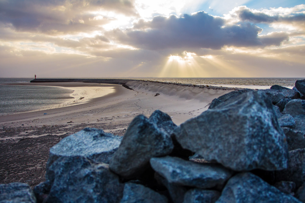 Der nördliche Schutzdamm des Anlegers ist als Buhne »W« bezeichnet. Erst kürzlich wurde sie deutlich erhöht und bietet jetzt auch bei schwereren Sturmfluten einen verhältnismäßig guten Schutz.