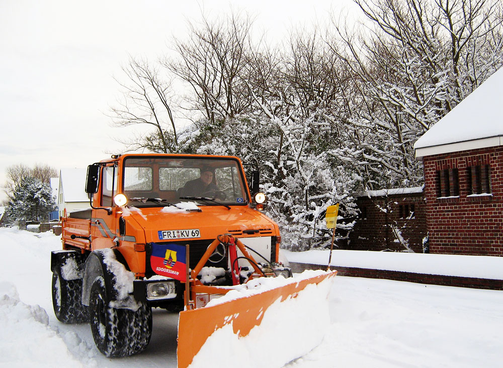 Wenn Schneemassen die Insel unter sich begraben, ist Hannes schon mit seinem Gemeinde-Unimog inkl. Schneepflug zur Stelle!