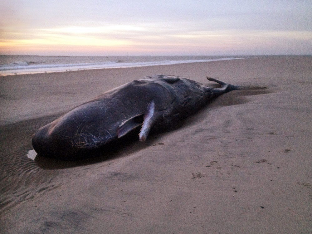 Hier noch einmal einer der beiden Pottwale, die Anfang Januar am Wangerooger Ostende gestrandet sind. Das Foto entstand in der Morgendämmerung.