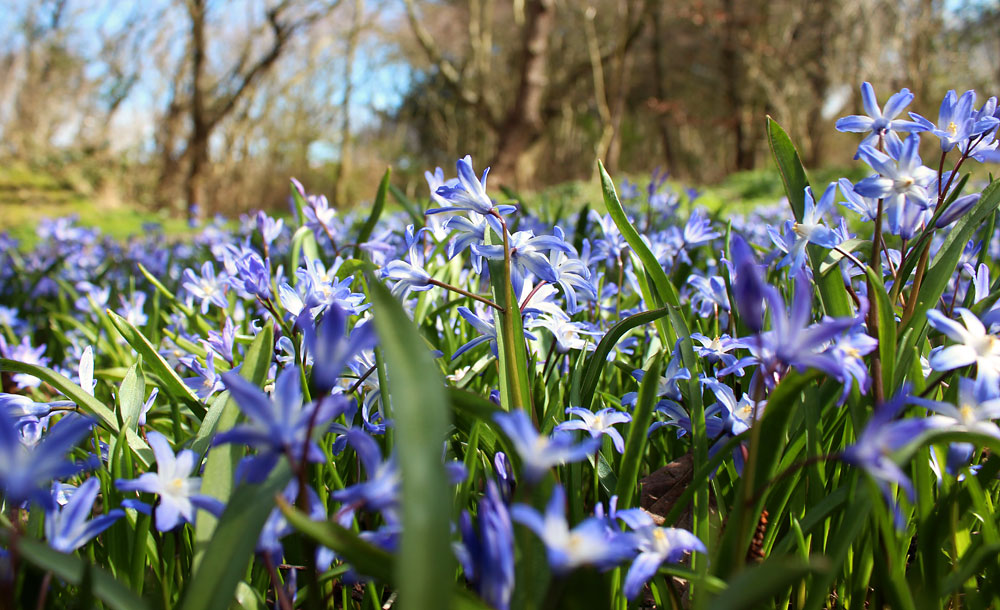 Im Teichgarten findet man einen relativ großen Bestand Gewöhnlicher Sternhyazinthen, die auch »Schneeglanz« oder »Gewöhnlicher Schneestolz« genannt werden.