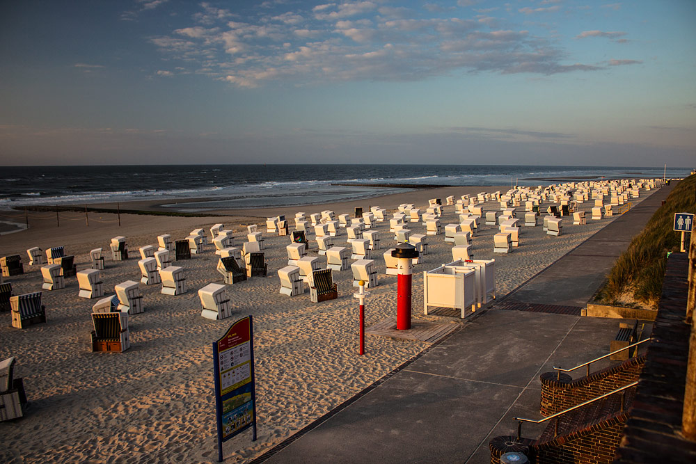 Von der Uhrtreppe aus hat man einen wunderbaren Blick über den Hauptstrand, in diesem Fall über das westliche Mittelfeld unterhalb des Strandhotels »Gerken«.