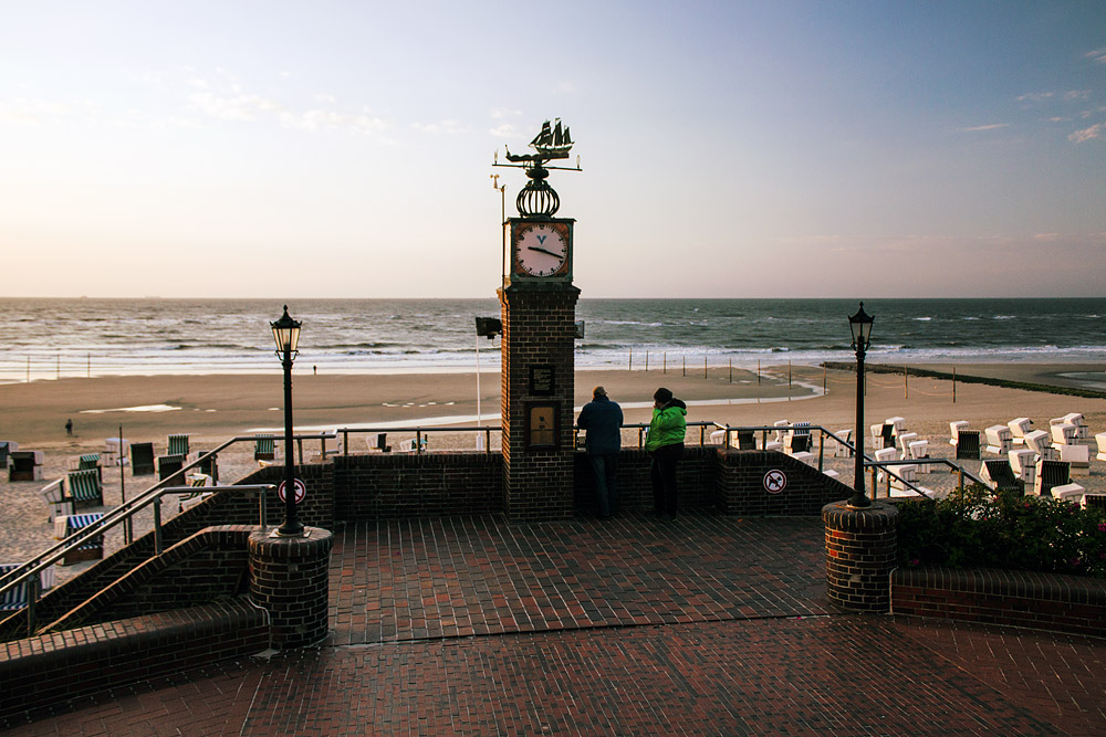 An dieser Stelle kann man sich entscheiden, ob man von der Strandpromenade aus nach links oder nach rechts hinunter zur Strandmauer steigen möchte.