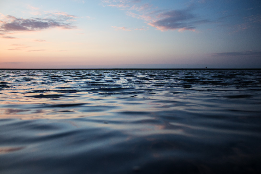 Ein Priel am Hauptstrand in Nahaufnahme.