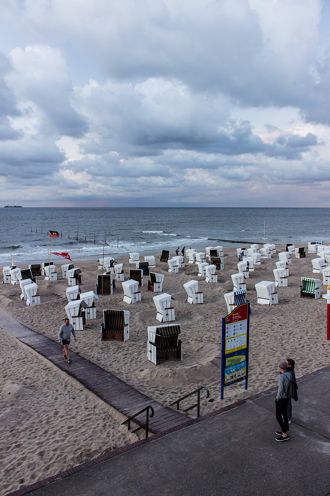 ‹ Östlich des Uhrsteges beginnt das Mittelfeld, in dem sich einige Hundert Strandkörbe befinden.