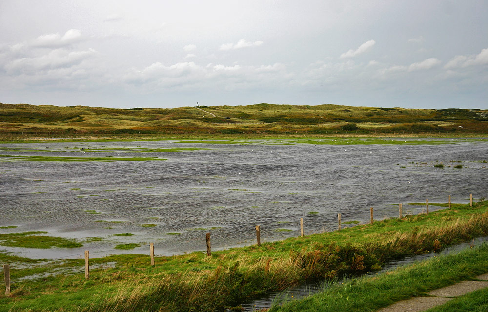 Fast so flach wie die Ostsee aber nicht gerade klein ist die Wasserfläche, die hier große Teile des Westinnengrodens bedeckt.